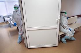 Государственное бюджетное учреждение здравоохранения "Городская клиническая больница №1 имени С.З.Фишера". Медицинские работники в "красной зоне", где проходит лечение больных с коронавирусной инфекцией COVID-19.