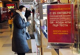 Меры против распространения коронавирусной инфекции COVID-19. Жанровая фотография. Проверка QR-кодов у посетителей торгового центра.