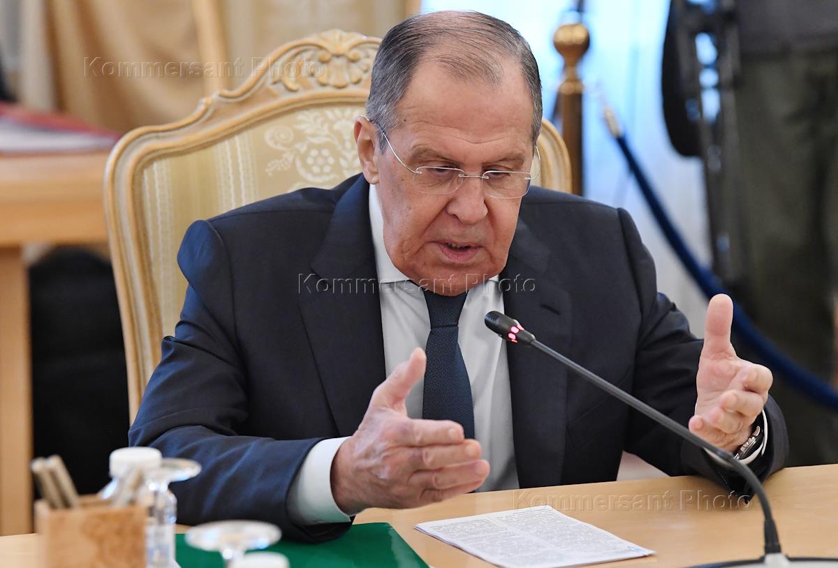 Переговоры министра иностранных дел России Сергея Лаврова с министром иностранных дел Республики Корея Чон Ый Ёном в Доме приемов МИД России. Министр иностранных дел России Сергей Лавров во время переговоров.