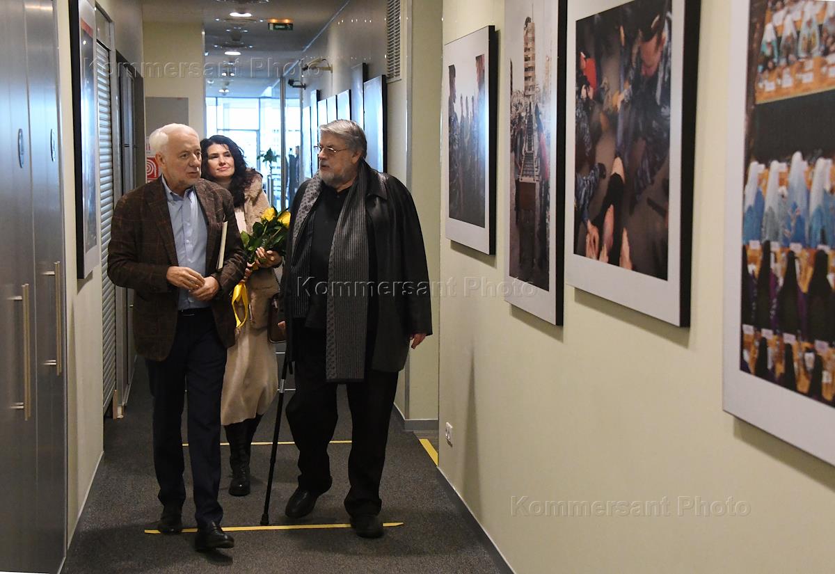 Президент Московского академического театра сатиры, актер Александр Ширвиндт (в центре) после окончания интервью в здании редакции газеты "Коммерсантъ".