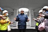 Пресс-тур на строительную площадку станции "Терехово" Московского метрополитена на западном участке Большой кольцевой линии. Журналисты на станции "Терехово".