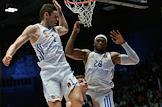 Евролига по баскетболу. Матч между командами "Зенит" (Санкт-Петербург, Россия) - "Реал Мадрид" (Мадрид, Испания) в спортивном комплексе "Юбилейный". Игроки команды "Реал Мадрид" Гершон Ябуселе (справа) и Фабьен Козёр (слева) во время матча.
