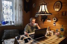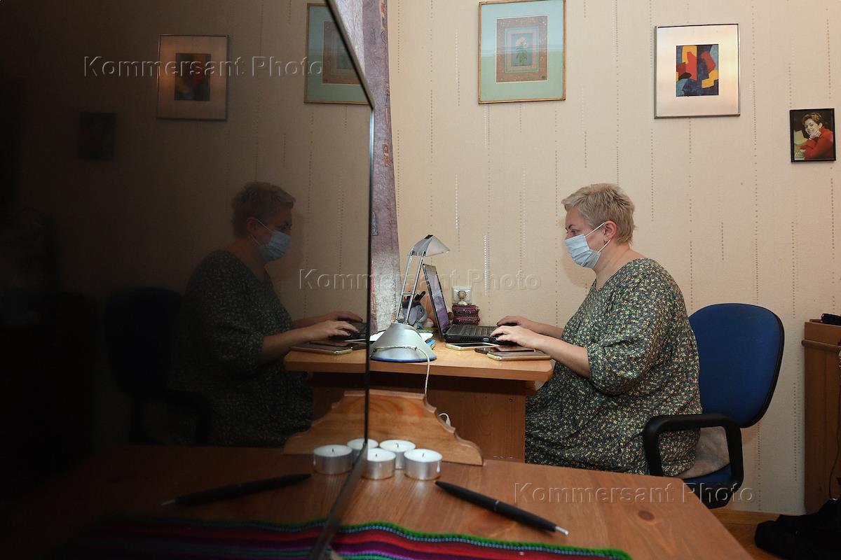Меры предосторожности и профилактики против коронавируса COVID-19. Жанровая фотография. Работа на удаленке во время самоизоляции в связи с введением нерабочих дней с частичным локдауном.