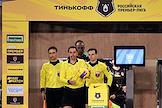 Российская Премьер-Лига (РПЛ). Тинькофф - Чемпионат России по футболу 2021/2022. 13-й тур. Матч между командами "Химки" (Химки) - "Урал" (Екатеринбург) на стадионе "Арена Химки". Арбитры перед началом матча.