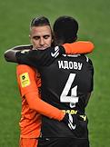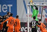 Российская Премьер-Лига (РПЛ). Тинькофф - Чемпионат России по футболу 2021/2022. 13-й тур. Матч между командами "Химки" (Химки) - "Урал" (Екатеринбург) на стадионе "Арена Химки". Вратарь команды "Химки" Илья Лантратов (второй справа) во время матча.