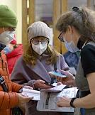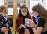 Меры по предотвращению распространения коронавирусной инфекции COVID-19. Администратор Драматического театра "На Литейном" проверяет на входе, наличие QR-кодов у посетителей театра.