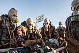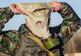Молодежный военно-патриотический слет, посвященный 80-й годовщине подвига Зиновия Колобанова, в поселке Виллози. Участник слета после марш-броска в противогазе.