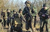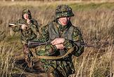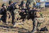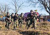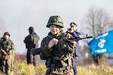 Молодежный военно-патриотический слет, посвященный 80-й годовщине подвига Зиновия Колобанова, в поселке Виллози. Участники слета во время марш-броска с оружием на этапе соревнований.