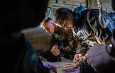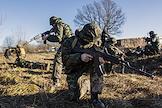 Молодежный военно-патриотический слет, посвященный 80-й годовщине подвига Зиновия Колобанова, в поселке Виллози. Участники слета во время эвакуации раненного на этапе соревнований.