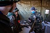 Молодежный военно-патриотический слет, посвященный 80-й годовщине подвига Зиновия Колобанова, в поселке Виллози. Участники слета во время знакомства с боевым оружием на этапе соревнований.