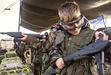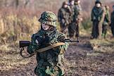 Молодежный военно-патриотический слет, посвященный 80-й годовщине подвига Зиновия Колобанова, в поселке Виллози. Участник слета во время стрельбы на этапе соревнований.