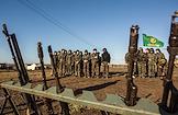 Молодежный военно-патриотический слет, посвященный 80-й годовщине подвига Зиновия Колобанова, в поселке Виллози. Участники слета во время построения перед началом соревнований.