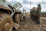 Молодежный военно-патриотический слет, посвященный 80-й годовщине подвига Зиновия Колобанова, в поселке Виллози. Участники слета во время прохождения этапа по езде в БТР.