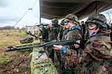 Молодежный военно-патриотический слет, посвященный 80-й годовщине подвига Зиновия Колобанова, в поселке Виллози. Участники слета во время стрельбы на этапе соревнований.