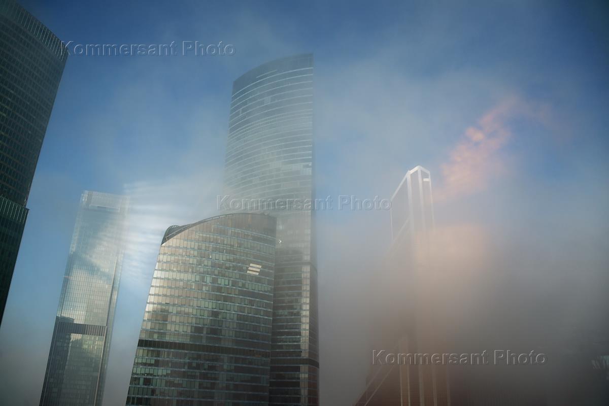 Виды Москвы во время тумана. Московский международный деловой центр "Москва-сити".