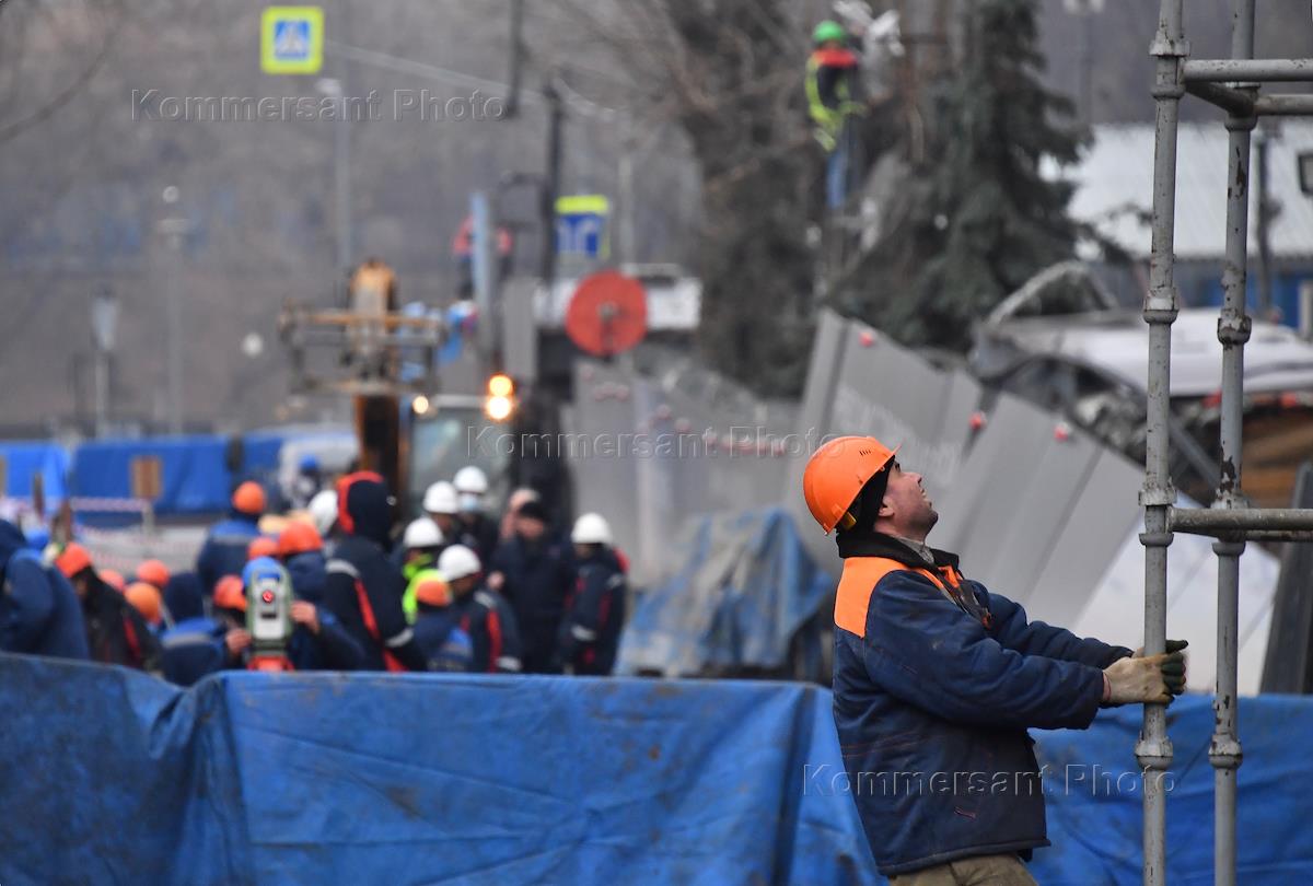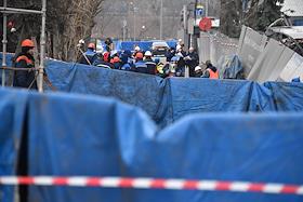 Обвал грунта на Краснопресненской набережной возле строительной площадки жилого комплекса Capital Tower со стороны Проектируемого проезда.