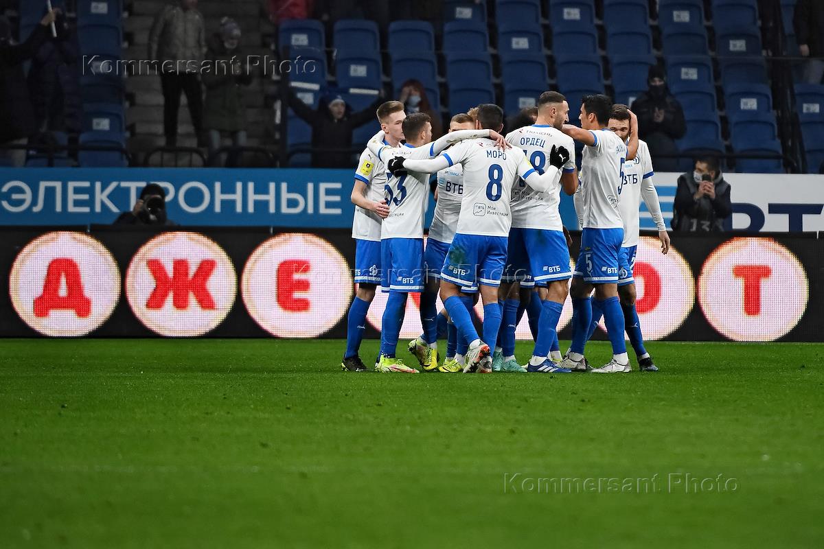 Российская Премьер-Лига (РПЛ). Тинькофф - Чемпионат России по футболу 2021/2022. 14-й тур. Матч между командами "Динамо" (Москва) - "Краснодар" (Краснодар) на стадионе "ВТБ Арена".