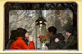 Виды Выборга. Жанровая фотография. Памятник-кофейня выборгскому трамваю. Посетители в кофейне.