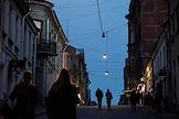 Виды Выборга. Жанровая фотография. Люди идут по вечерней улице.