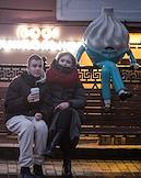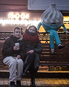 Введение ограничительных мер против распространением коронавирусной инфекции. Жанровая фотография. Девушки с напитками из Burger King во время вечерней прогулки.