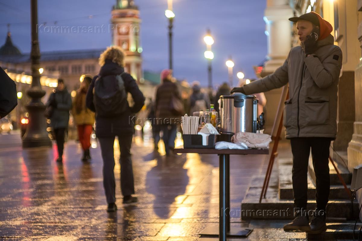 Введение ограничительных мер против распространением коронавирусной инфекции. Жанровая фотография. Уличная торговля в режиме "на вынос".