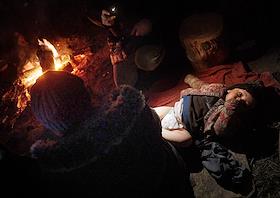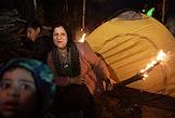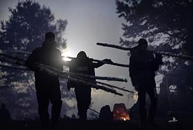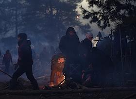 Ситуация с беженцами на белорусско-польской границе. Мигранты у костра в лагере.