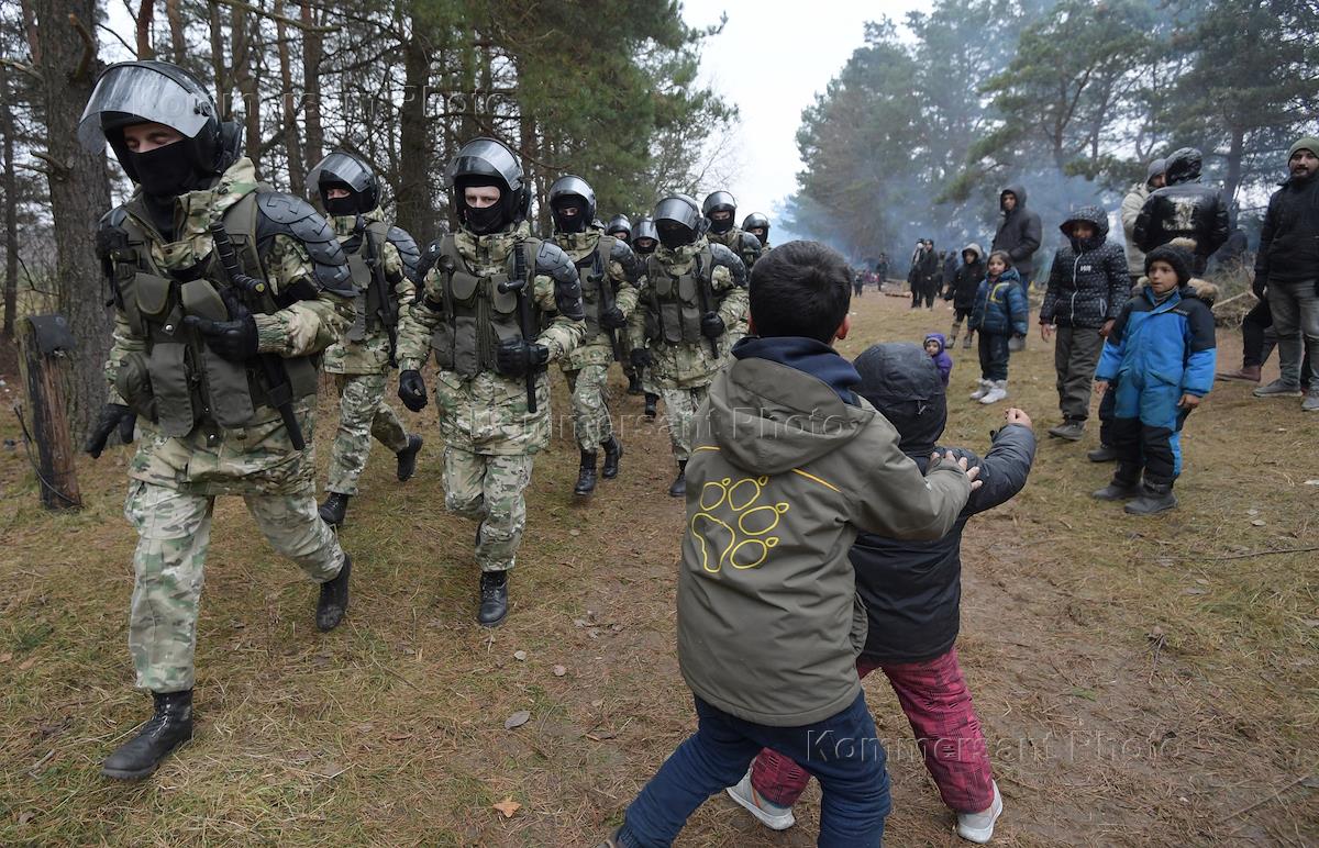Ситуация с беженцами на белорусско-польской границе. Столкновение белорусских пограничников с беженцами в палаточном лагере для мигрантов.
