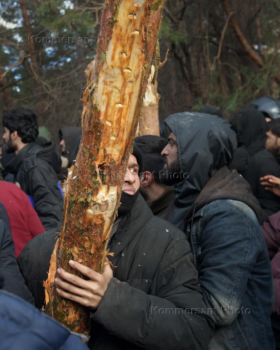 Ситуация с беженцами на белорусско-польской границе. Мигранты в лагере во время столкновения с пограничными службами.