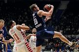 Евролига по баскетболу. Матч между командами "Зенит" (Россия, Санкт-Петербург) - "Олимпиакос" (Греция, Пирей) в Многофункциональном концертно-спортивном комплексе (МКСК) "Сибур-Арена". Игрок команды "Олимпиакос" Александар Везенков перед началом матча.