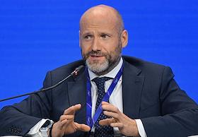 XV Международный форум "Транспортная неделя 2021" в Гостином дворе. Заместитель министра экономического развития России Владислав Федулов во время форума.