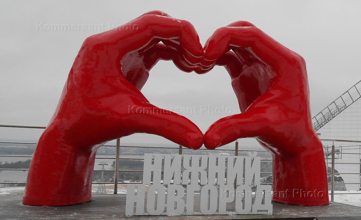 Виды Нижнего Новгорода. Арт-объект "Я люблю Нижний Новгород" на смотровой площадке возле Сенной площади.