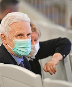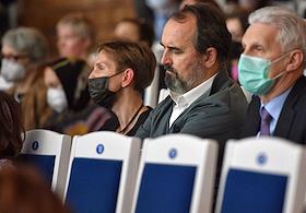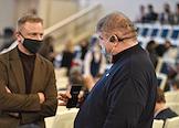 Совместный проект Московской филармонии, ММОМА и Aksenov Family Foundation "Русская музыка 2.1". Мировые премьеры произведений композиторов-лауреатов в Концертном зале имени П.И.Чайковского. Ректор Московского физико-технического института (МФТИ) Дмитрий Ливанов (слева) перед началом концерта.