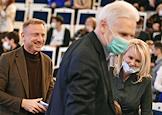 Совместный проект Московской филармонии, ММОМА и Aksenov Family Foundation "Русская музыка 2.1". Мировые премьеры произведений композиторов-лауреатов в Концертном зале П.И.Чайковского. Помощник президента России Андрей Фурсенко перед началом концерта.