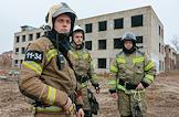Тактико-специальные учения по теме: "Действия органов управления, сил и средств объектового звена при возникновении чрезвычайной ситуации (ЧС), обусловленной взрывом природного газа в многоквартирном доме". Сотрудник ГУ МЧС России по Ростовской области во время учений.