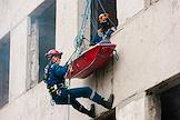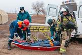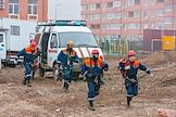 Тактико-специальные учения по теме: "Действия органов управления, сил и средств объектового звена при возникновении чрезвычайной ситуации (ЧС), обусловленной взрывом природного газа в многоквартирном доме". Сотрудники Ростовской областной и городской поисково-спасательных служб во время учений.