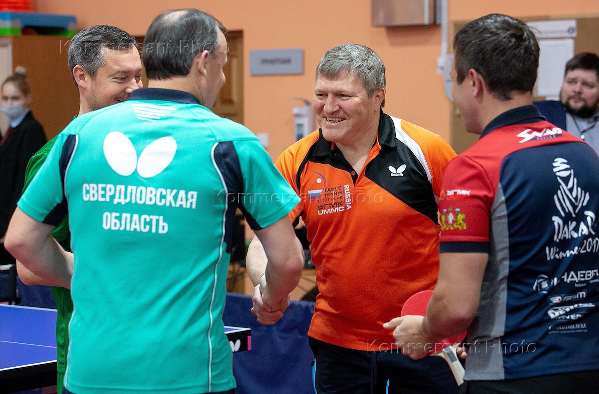 Турнир по настольному теннису "Уральская шляпа", посвященный памяти директора по общим вопросам "УГМК-Холдинга" и бывшего главы теннисного клуба компании Владимира Белоглазова. Слева направо: губернатор Свердовской области Евгений Куйвашев, руководитель второго отдела по расследованию особо важных дел СУ СКР по Свердловской области Алексей Шмаков, бывший управляющий делами нотариальной палаты Свердловской области Петр Дьячков, помощник президента России Игорь Левитин и мэр Екатеринбурга Алексей Орлов во время турнира.
