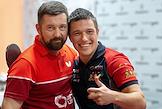 Турнир по настольному теннису "Уральская шляпа", посвященный памяти директора по общим вопросам "УГМК-Холдинга" и бывшего главы теннисного клуба компании Владимира Белоглазова. Автогонщик Сергей Карякин (справа) и директор ассоциации клуба настольного тенниса УГМК Дмитрий Балаченков (слева) во время турнира.