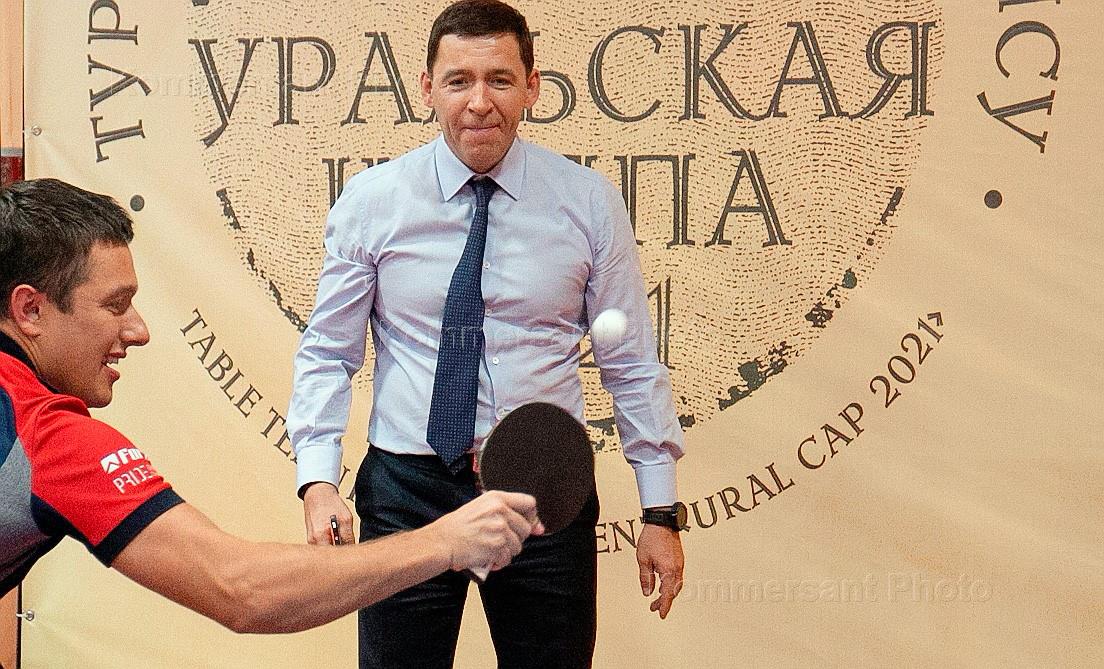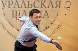 Турнир по настольному теннису "Уральская шляпа", посвященный памяти директора по общим вопросам "УГМК-Холдинга" и бывшего главы теннисного клуба компании Владимира Белоглазова. Губернатор Свердовской области Евгений Куйвашев во время турнира.