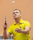 Автогонщик Сергей Карякин на турнире по настольному теннису "Уральская шляпа".
