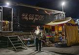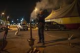 Повседневная жизнь российских цирков. Жанровая фотография. Артист Волгоградского Цирка - Шапито готовит вечерний чай в самоваре для всей труппы.