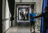 Повседневная жизнь российских цирков. Жанровая фотография. Большой московский цирк на проспекте Вернадского. Слон выходит из своего помещения на арену перед выступлением.