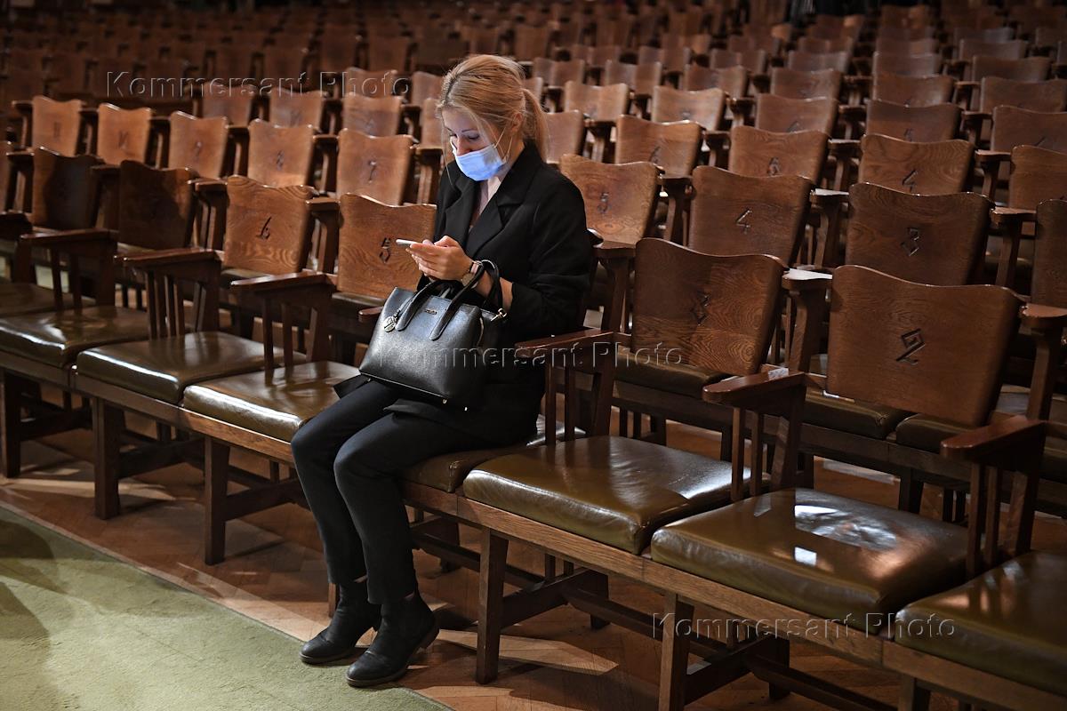 Сбор труппы Московского художественного театра (МХТ) имени А.П.Чехова, посвященный представлению нового художественного руководителя театра Константина Хабенского. Актриса Марина Зудина во время сбора труппы.