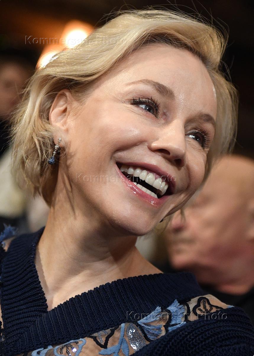 Сбор труппы Московского художественного театра (МХТ) имени А.П.Чехова, посвященный представлению нового художественного руководителя театра Константина Хабенского. Актриса Марина Зудина во время сбора труппы.