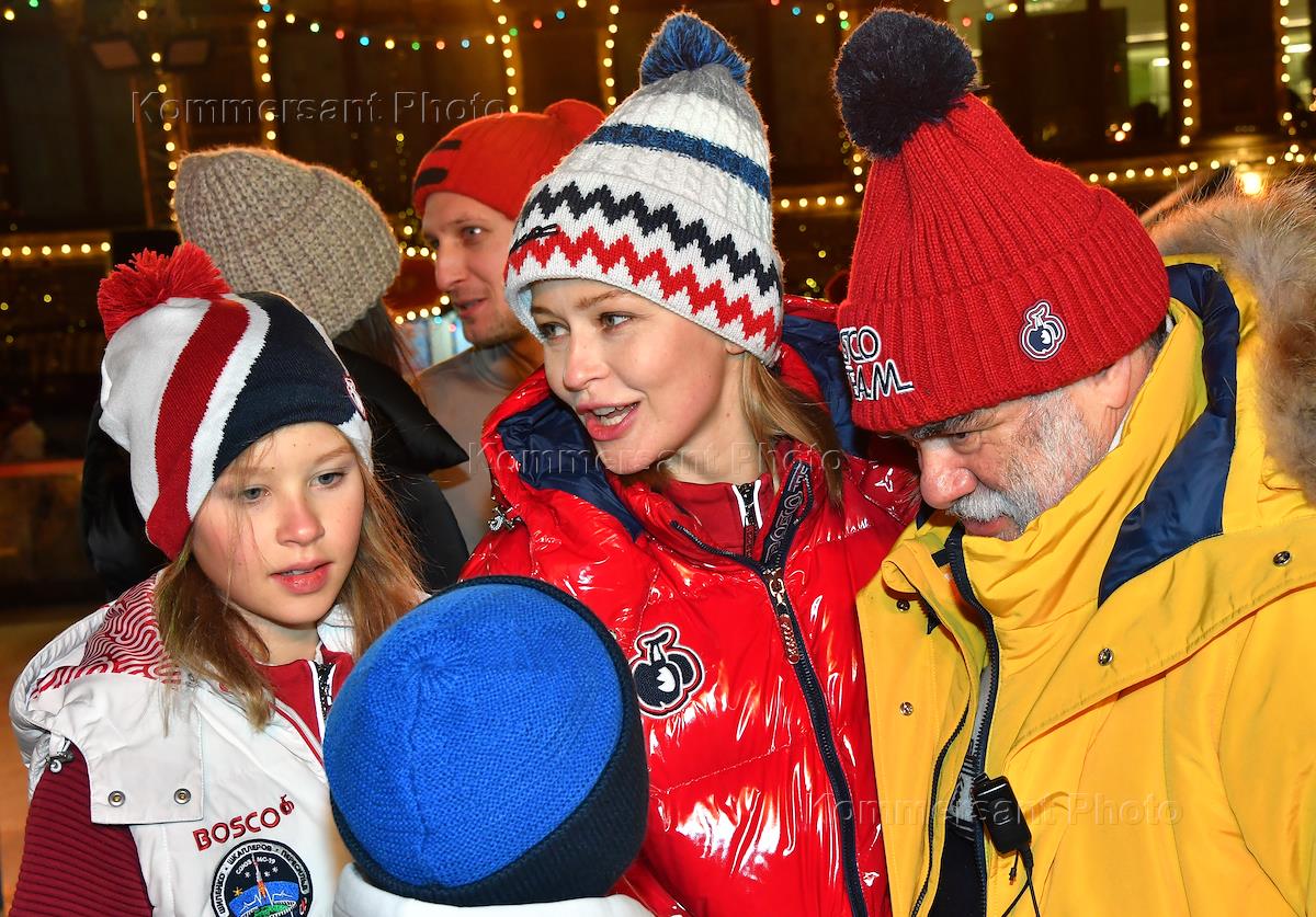 Церемония открытия "ГУМ-Каток" на Красной площади. Телеведущая Юлия Барановская со своими детьми на церемонии.