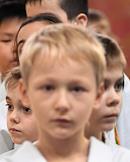 Открытое занятие в рамках первого в столице проекта по обучению детей дошкольного возраста физической культуре с начальными элементами дзюдо прошло в центре спорта и образования (школа) "Самбо-70". Жанровая фотография. Воспитанники во время открытого занятия.