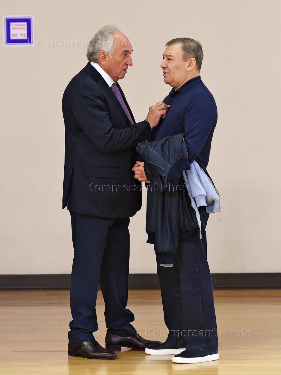 Открытое занятие в рамках первого в столице проекта по обучению детей дошкольного возраста физической культуре с начальными элементами дзюдо прошло в центре спорта и образования "Самбо-70". Первый вице-президент Федерации дзюдо России (ФДР), президент Международного фонда дзюдо, создатель проекта "Дошкольное дзюдо" Аркадий Ротенберг (справа) и президент Федерации дзюдо России Василий Анисимов (слева) после окончания открытого занятия.