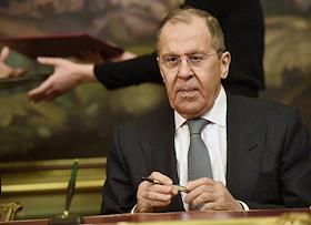 Министр иностранных дел России Сергей Лавров во время церемония подписания совместных документов по итогам переговоров с министром иностранных дел Бразилии Карлусом Алберту Франку Франсой в Доме приемов МИД России.