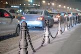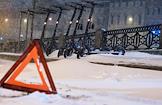 Виды Санкт-Петербурга. Снегопад в городе. Автомобили едут по заснеженной дороге.