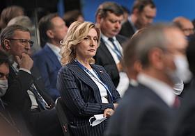 III этап съезда Всероссийской политической партии "Единая Россия" в ЦВК "Экспоцентр". Заместитель председателя Государственной думы России Анна Кузнецова во время выступления на съезде.