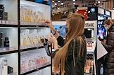 Жанровая фотография. Продавец в отделе парфюмерного магазина проверяет цены на духи.